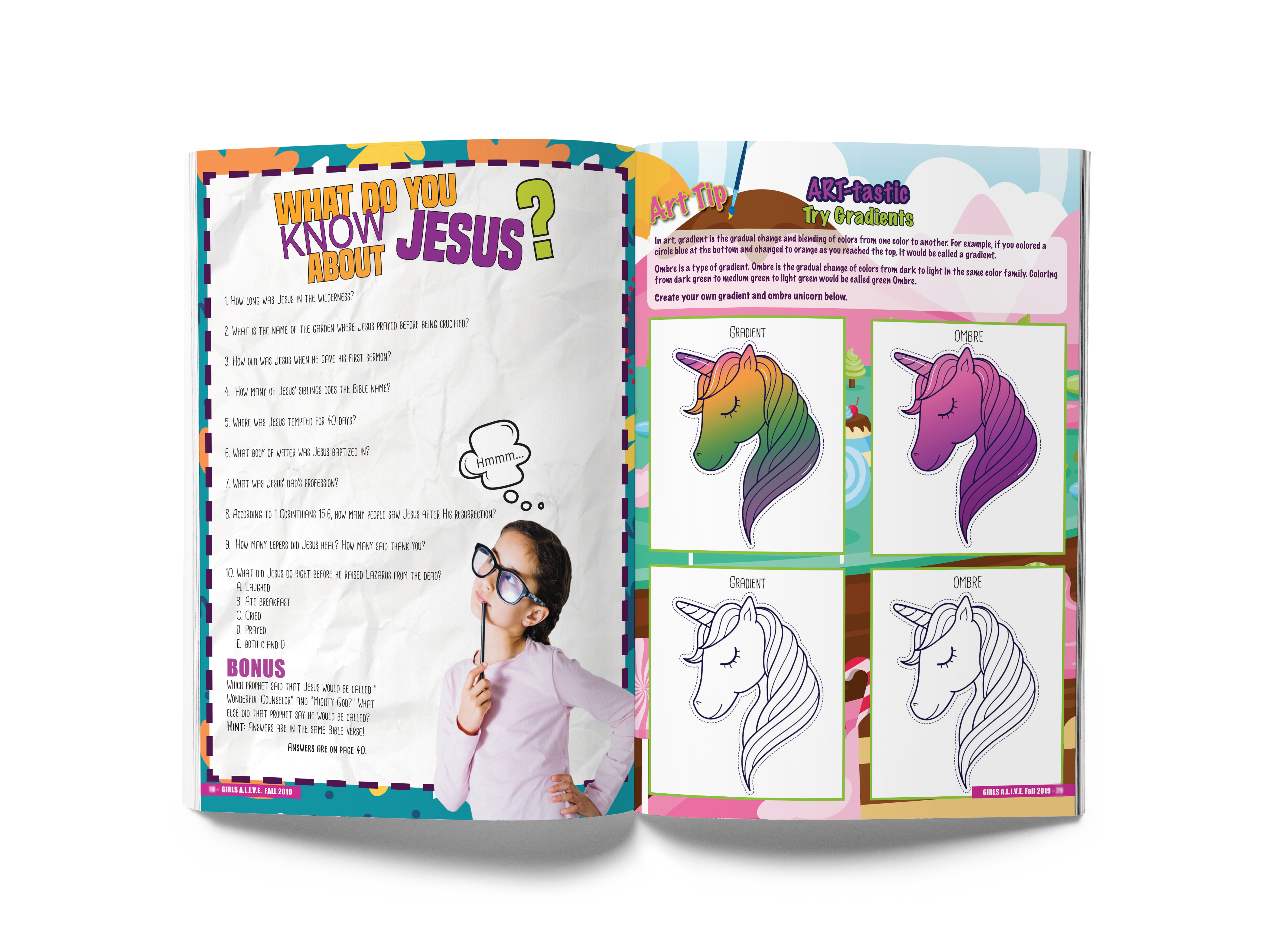 The Girls A.L.I.V.E. and AMP’D Up magazines are so appealing, colorful, engaging, and Christ-centered. It is a masterful blend of biblically-based enriching, educational, and entertaining activity designed specially for youth. They can sense that the publication was intentionally created for them.